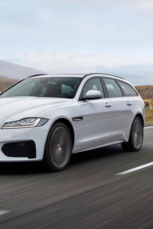 Обои Автомобиль Jaguar XF S Sportbrake, 2017 года на трассе