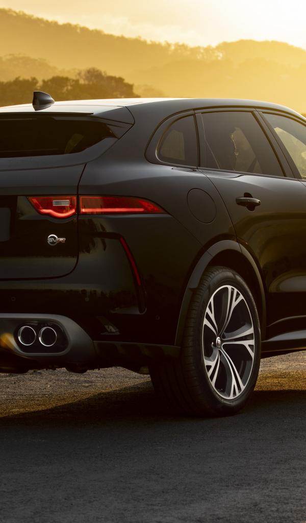Обои Черный стильный Jaguar F-Pace SVR 2019 года вид сзади