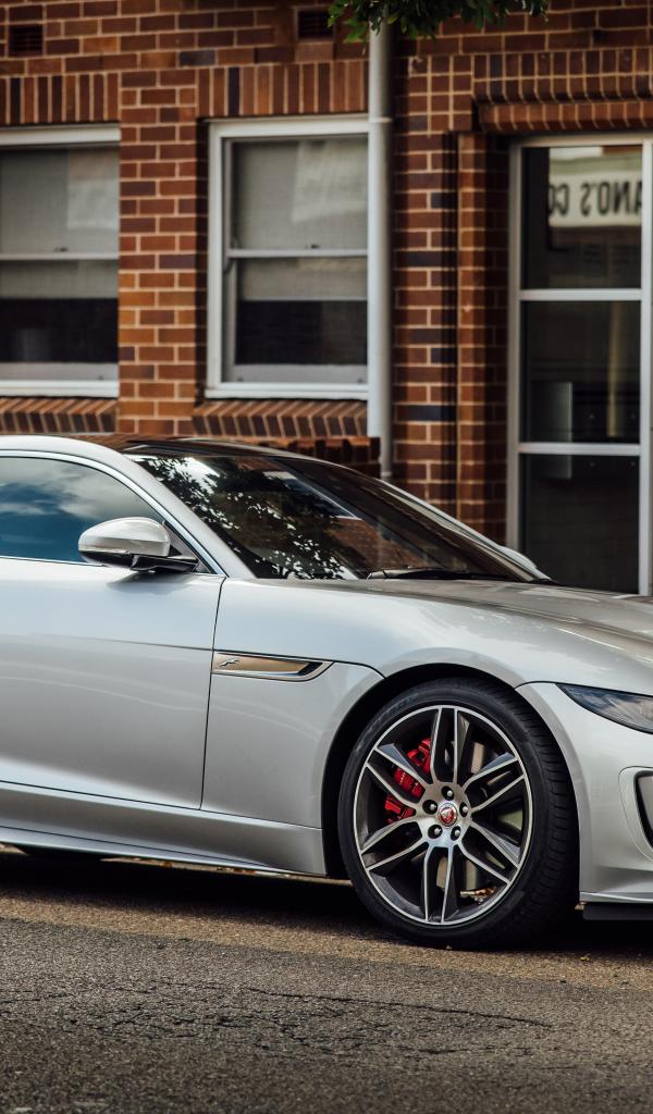 Обои Серый автомобиль Jaguar F-Type P380, у стены