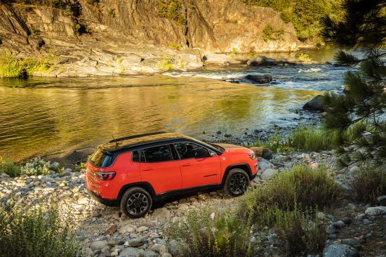 Обои Красный Jeep Compass Trailhawk, 2017 на берегу