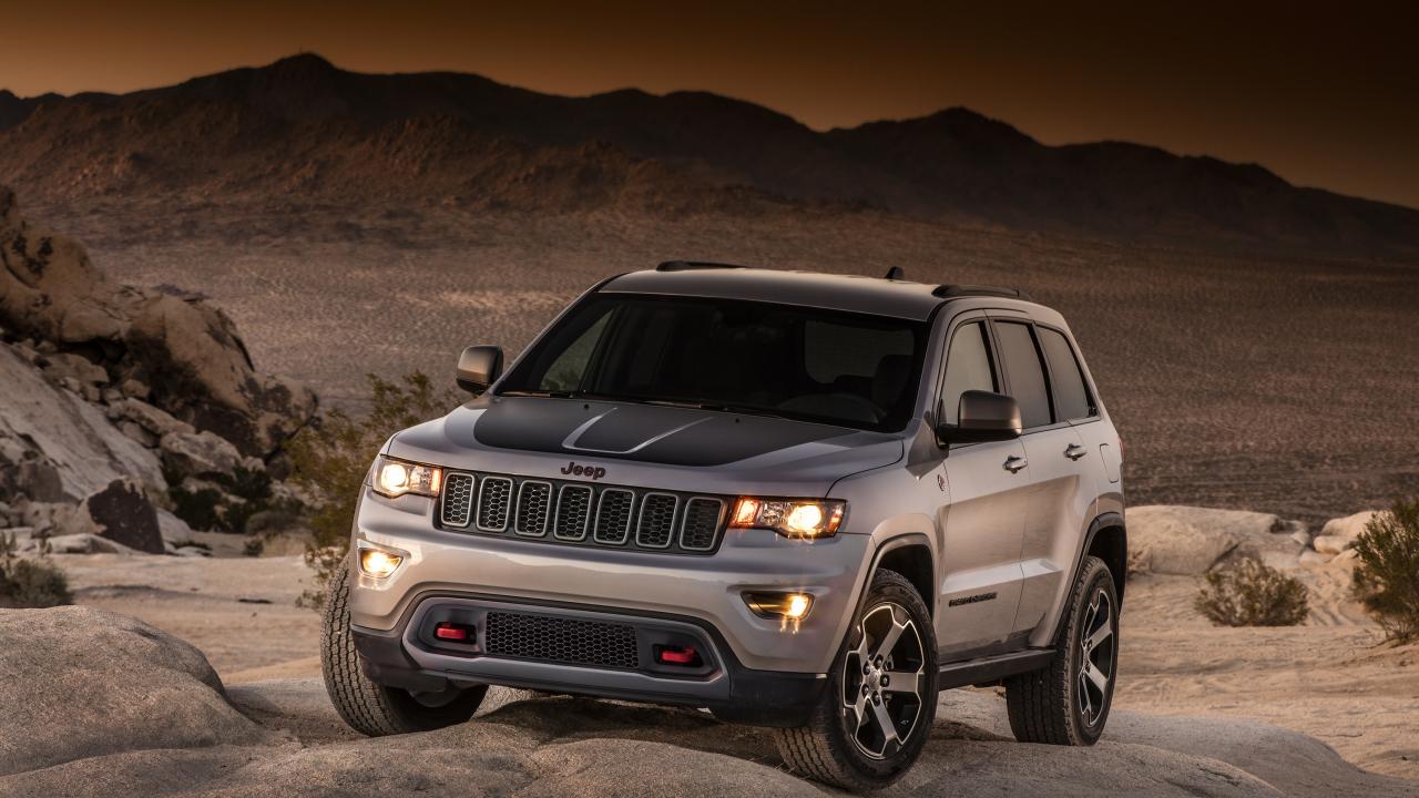 Обои Серебристый внедорожник Jeep Grand Cherokee в пустыне