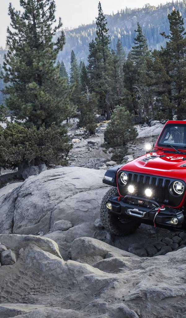 Обои Красный внедорожник Jeep Wrangler With Mopar, 2018 года в горах