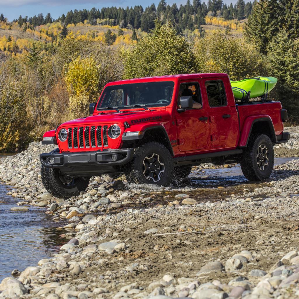 640x480600x1024Обои Красный пикап Jeep Gladiator Rubicon, 2020 года у реки