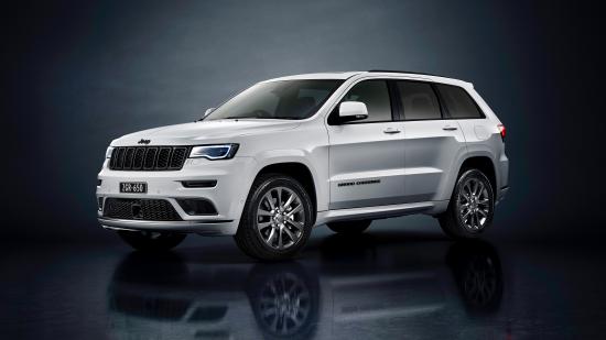 Обои Серый внедорожник Jeep Grand Cherokee S Overland 2019 года на сером фоне