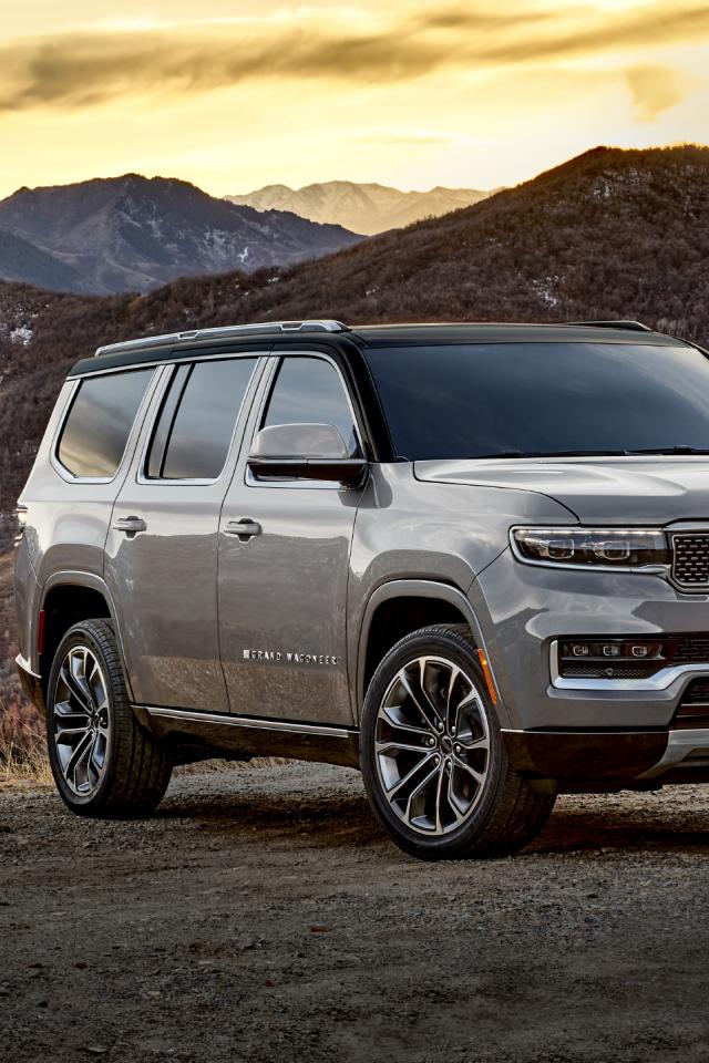 Обои Серебристый внедорожник Jeep Grand Wagoneer Series III, 2022 года в горах