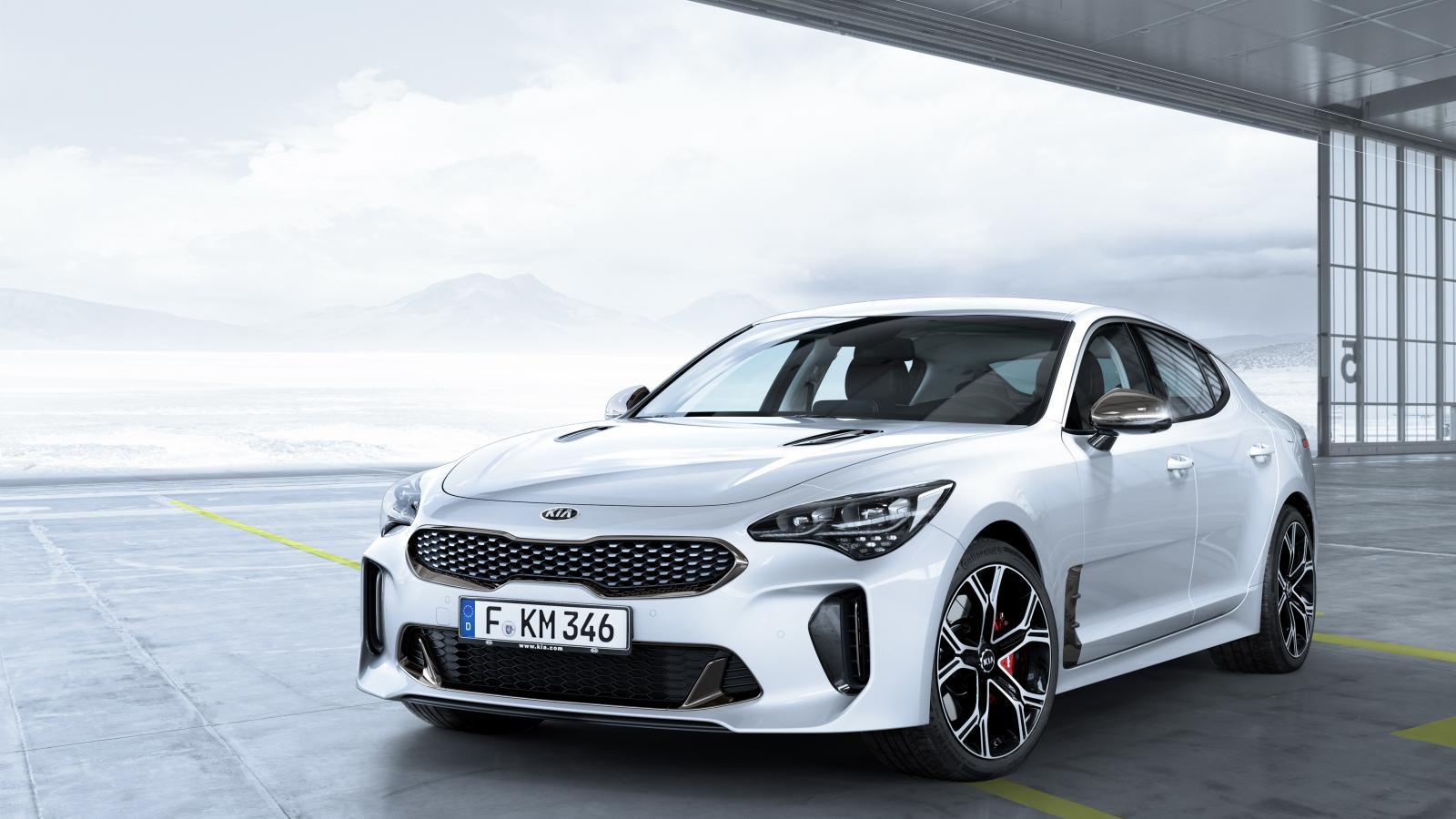 Обои Белый автомобиль Kia Stinger GT, 2017
