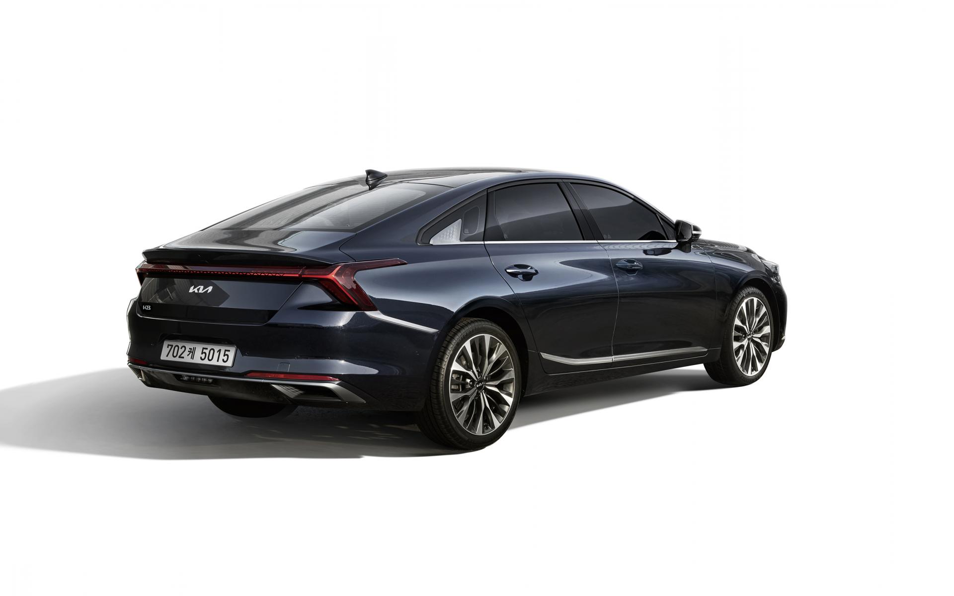 Обои Черный автомобиль Kia K8 2021 года вид сзади