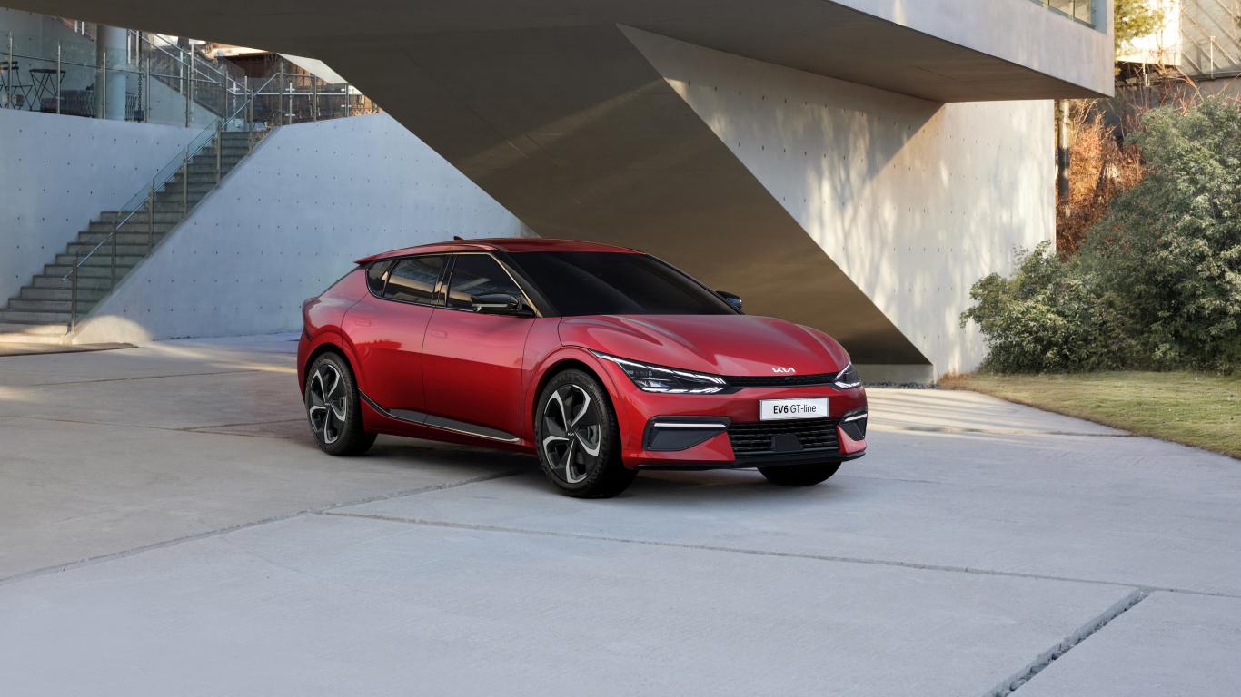 Обои Красный автомобиль Kia EV6 GT Line 2021 года