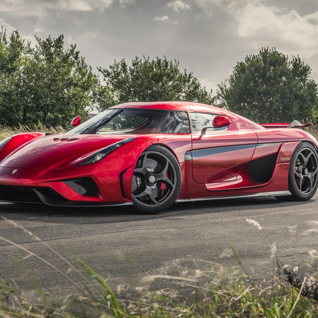 Обои Красный спортивный автомобиль Koenigsegg Regera на дороге