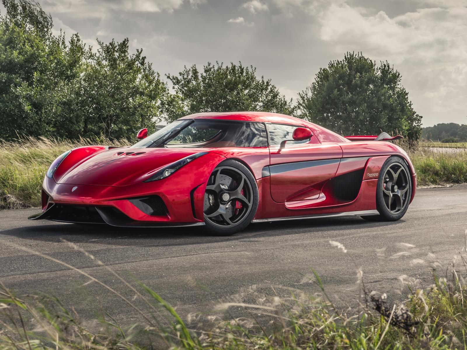 Обои Красный спортивный автомобиль Koenigsegg Regera на дороге