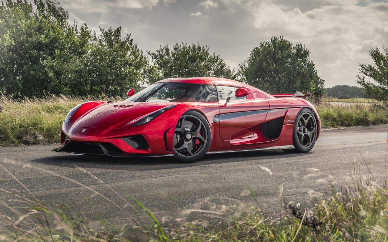 Обои Красный спортивный автомобиль Koenigsegg Regera на дороге