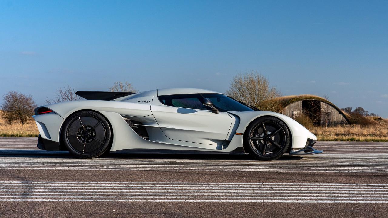 Обои Белый автомобиль Koenigsegg Jesko Absolut 2020 года вид сбоку