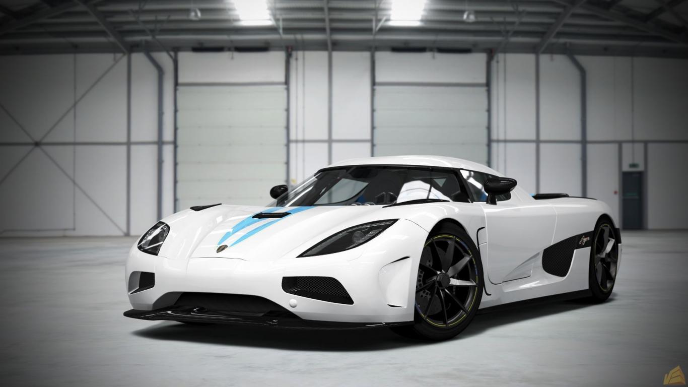 Обои Белый Koenigsegg Agera в ангаре