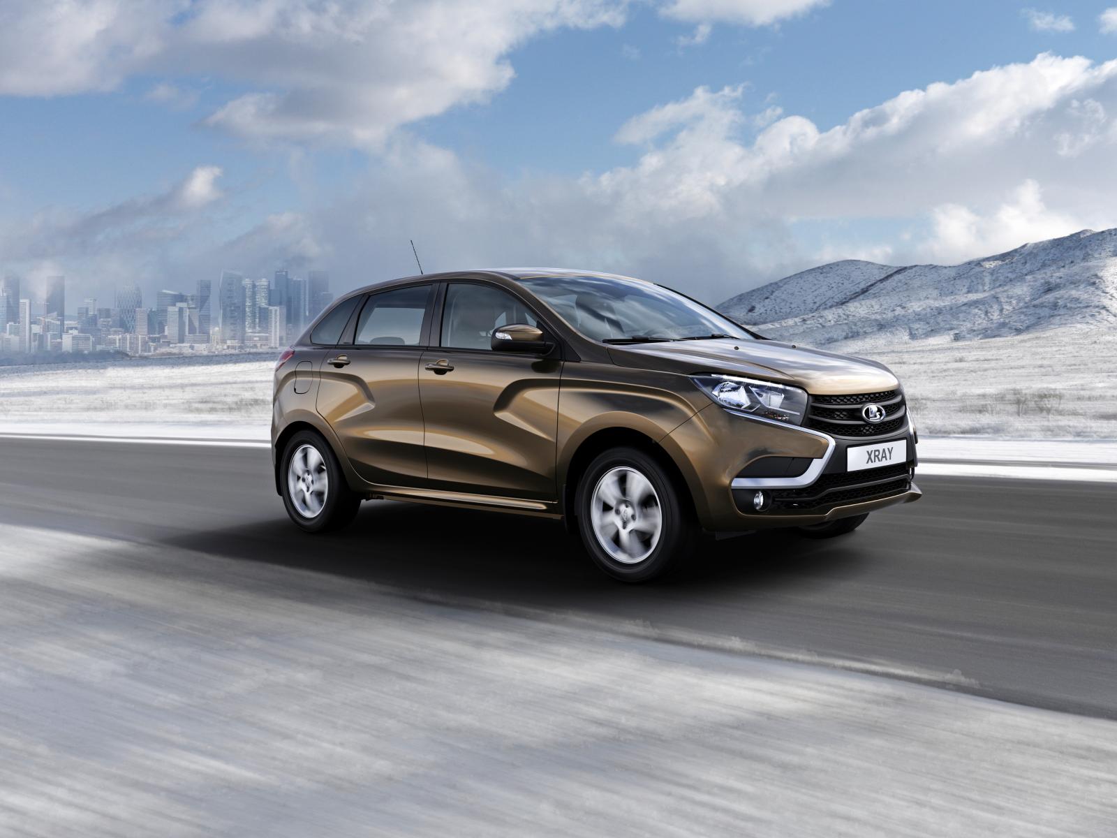 Обои Автомобиль Лада XRAY на трассе на фоне красивого неба