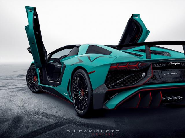 Обои Вид сзади на светло зеленый Lamborghini Aventador