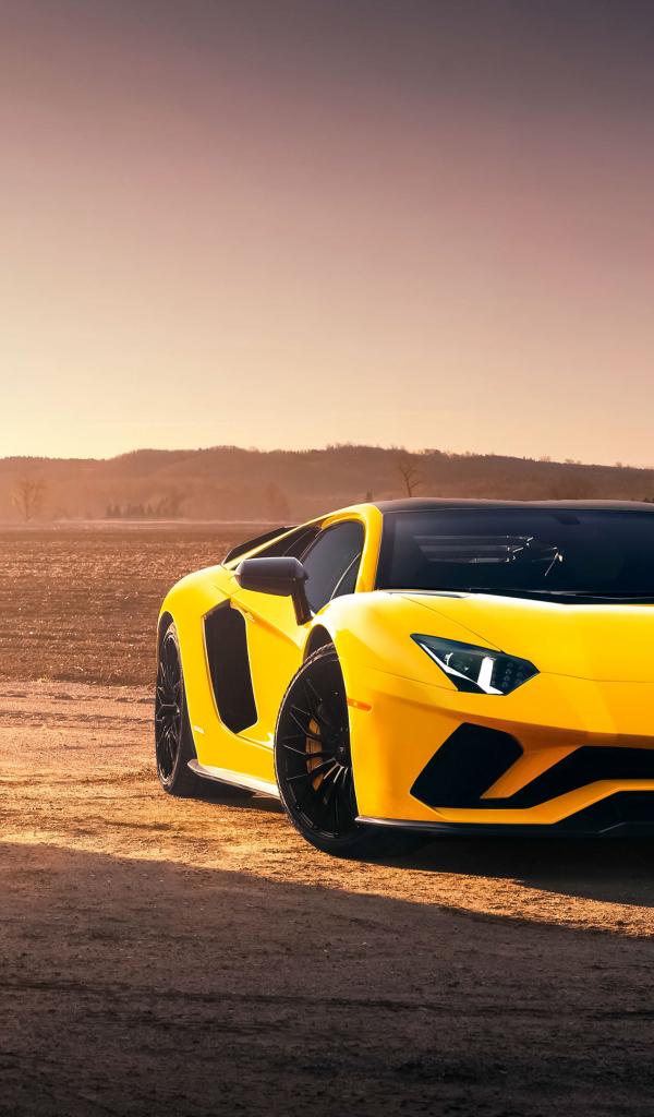 Обои Желтый спортивный автомобиль Lamborghini Aventador S в лучах солнца