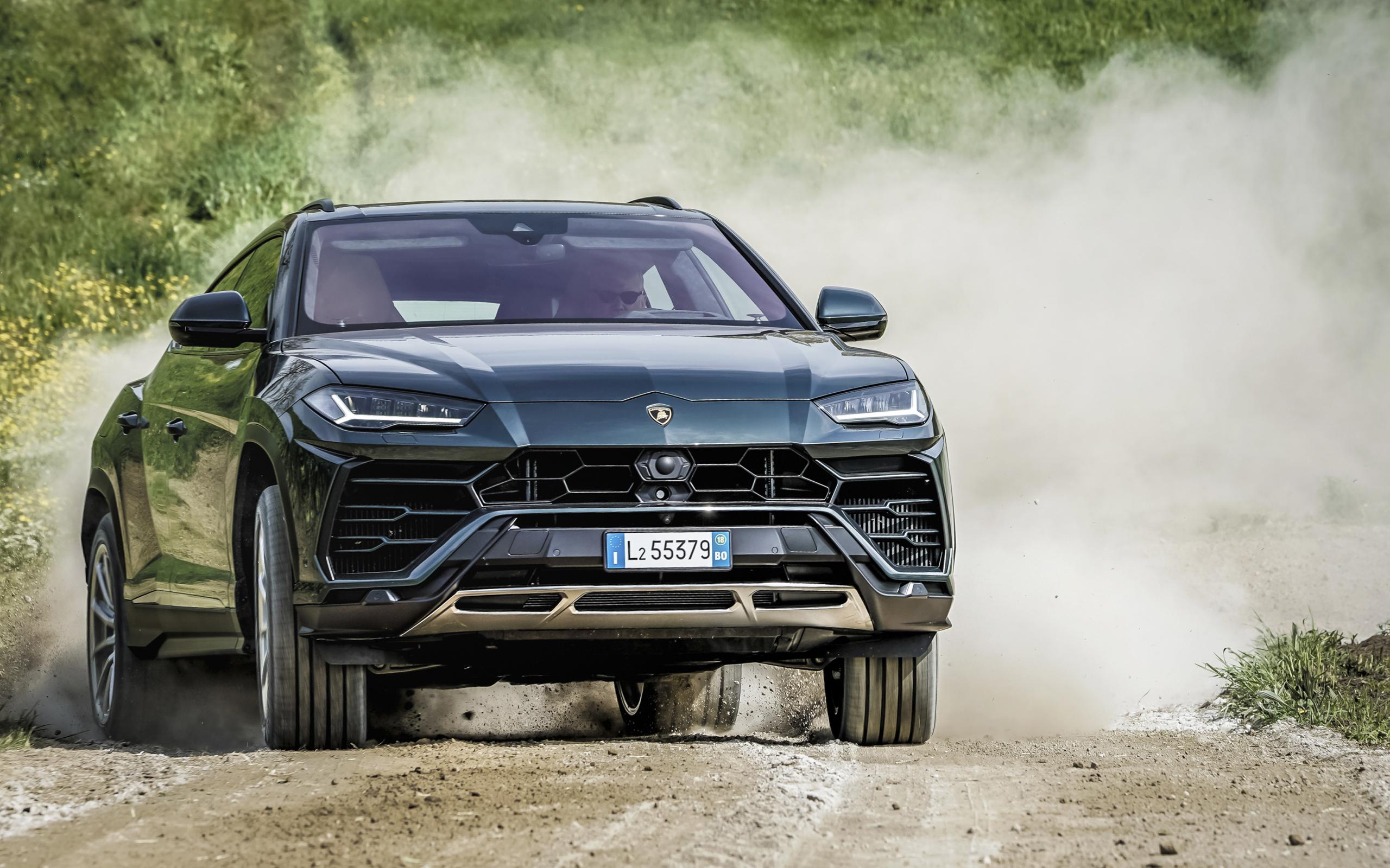 Обои Внедорожник Lamborghini Urus 2018 года на дороге в пыли