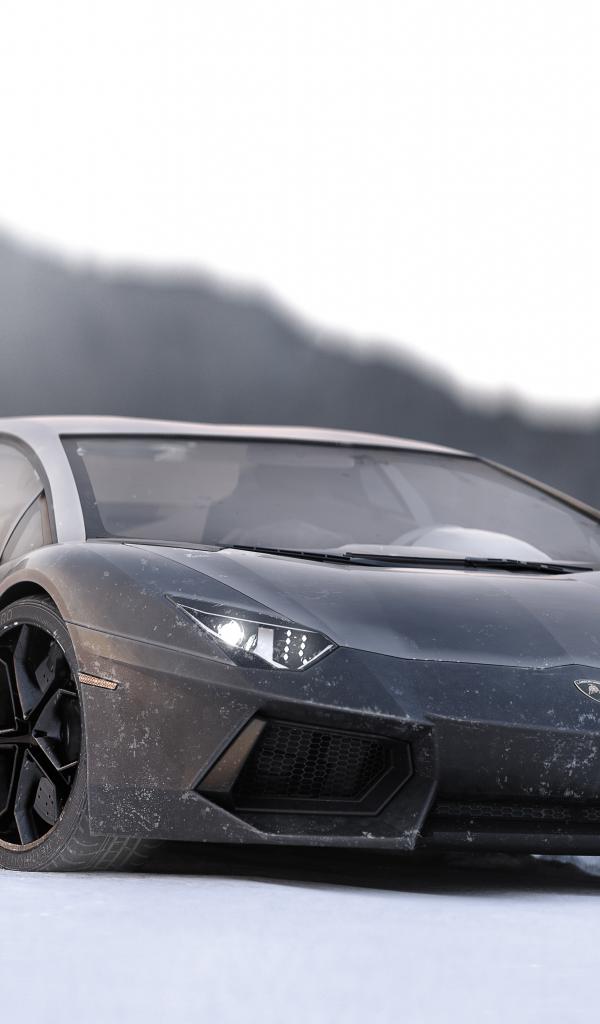 Обои Серый спортивный автомобиль Lamborghini Aventador на снегу