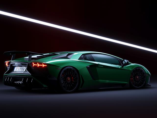Обои Зеленый спортивный автомобиль Lamborghini Aventador SV вид сзади