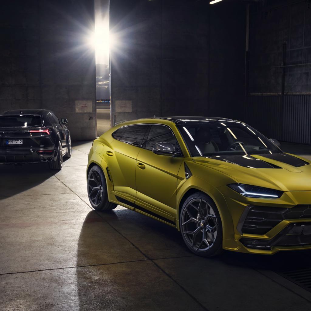 Обои Два автомобиля Novitec Lamborghini Urus Esteso 2019 года в гараже