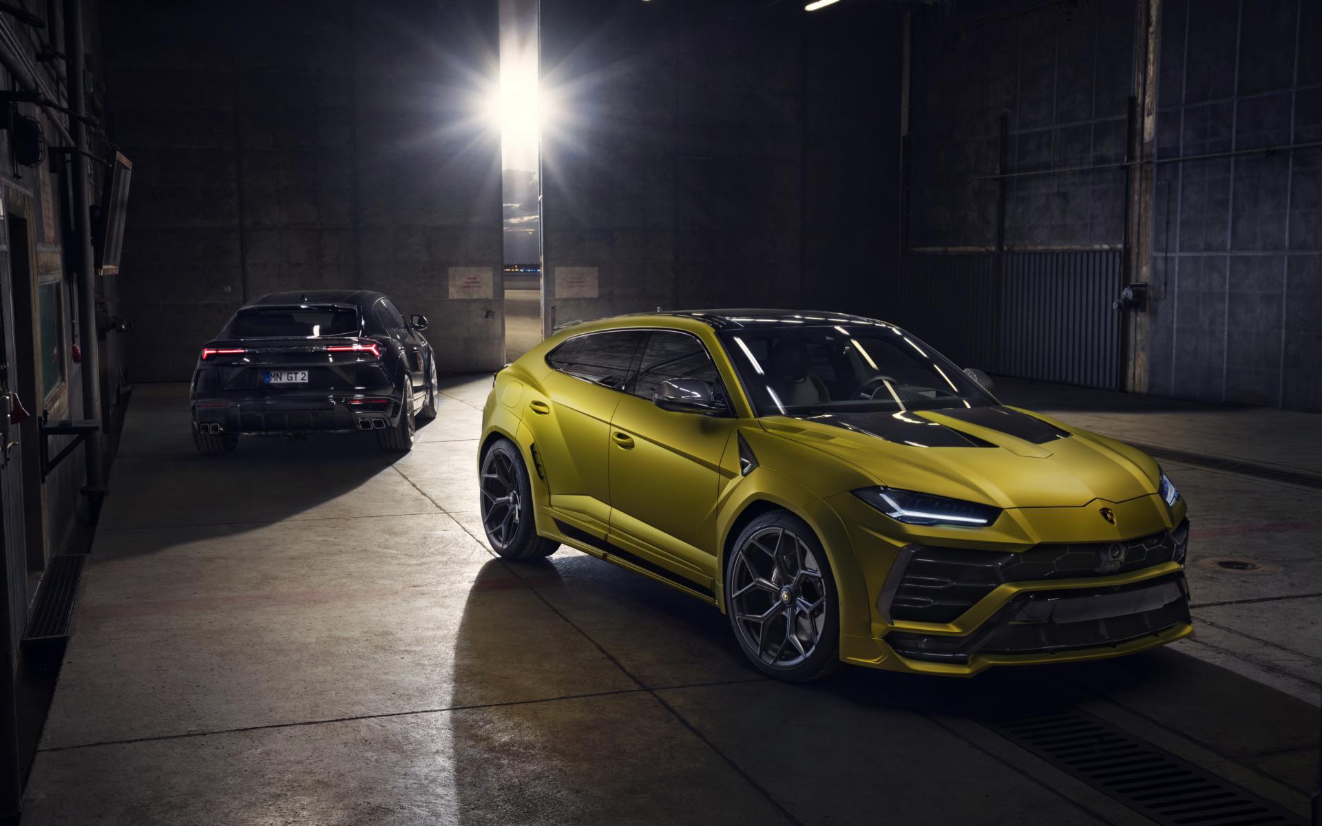 Обои Два автомобиля Novitec Lamborghini Urus Esteso 2019 года в гараже