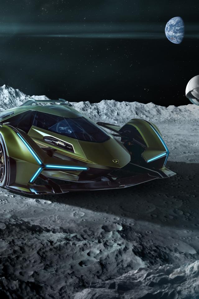 Обои Спортивный автомобиль Lamborghini Lambo V12, 2019 года на поверхности луны