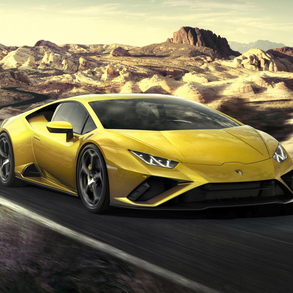 Обои Автомобиль Lamborghini Huracan EVO RWD 2020 года едет по дороге