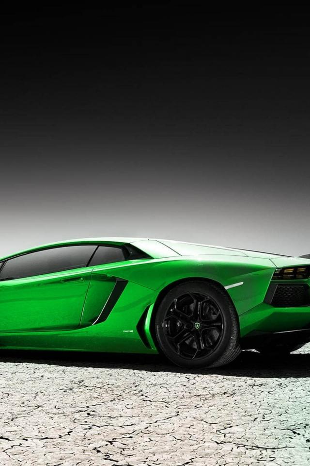 Обои Зеленый Lamborghini на серой земле
