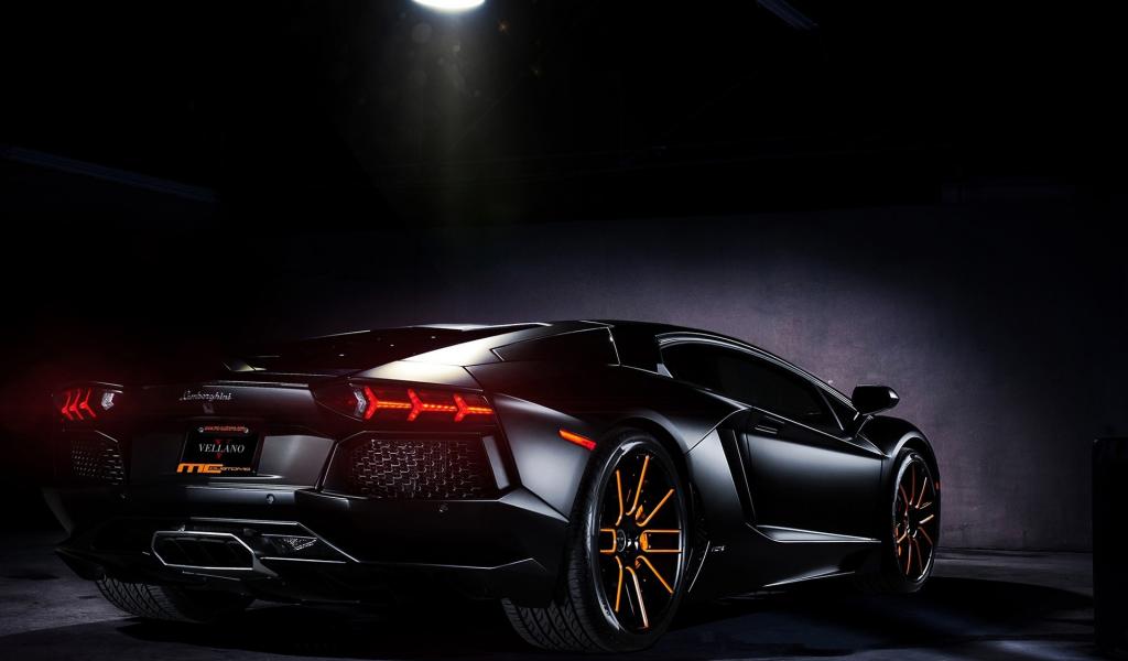 Обои Черный Lamborghini в луче прожектора