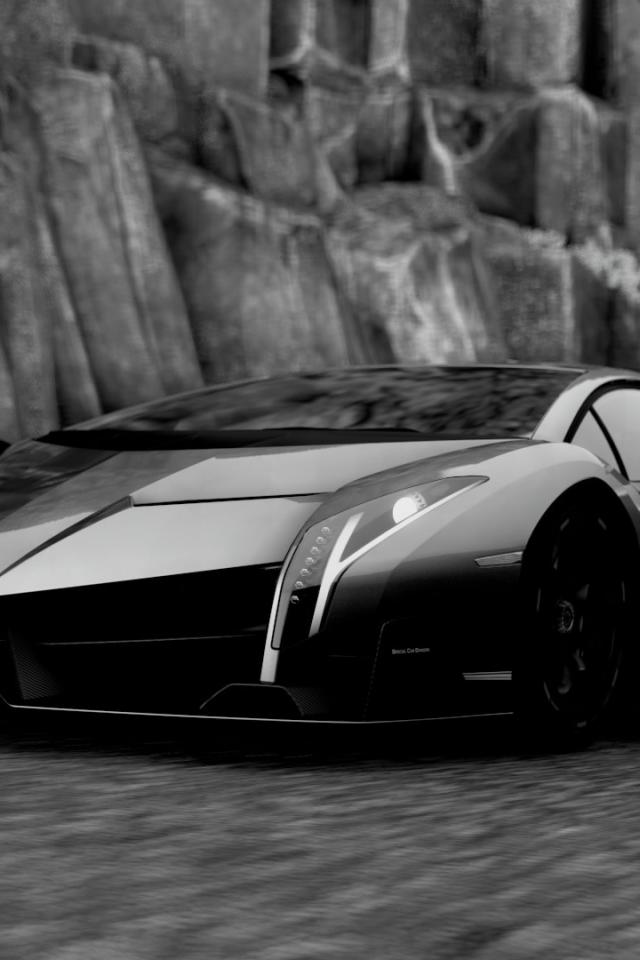 Обои Черный Ламборгини у каменной скалы