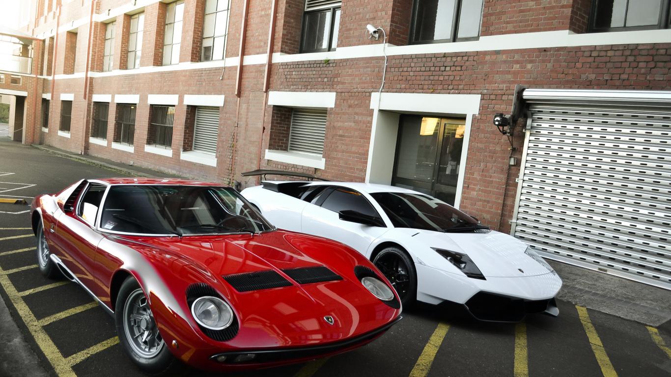 Обои Красный и белый Mercedes-Benz SLS AMG на брусчатке