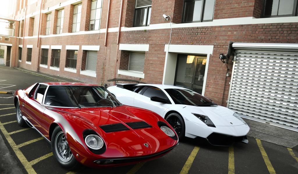 Обои Белый и красный ламборджини