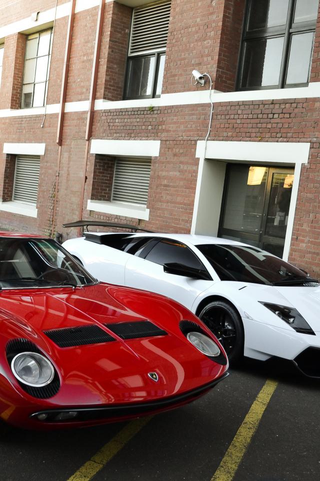 Обои Красный и белый Mercedes-Benz SLS AMG на брусчатке