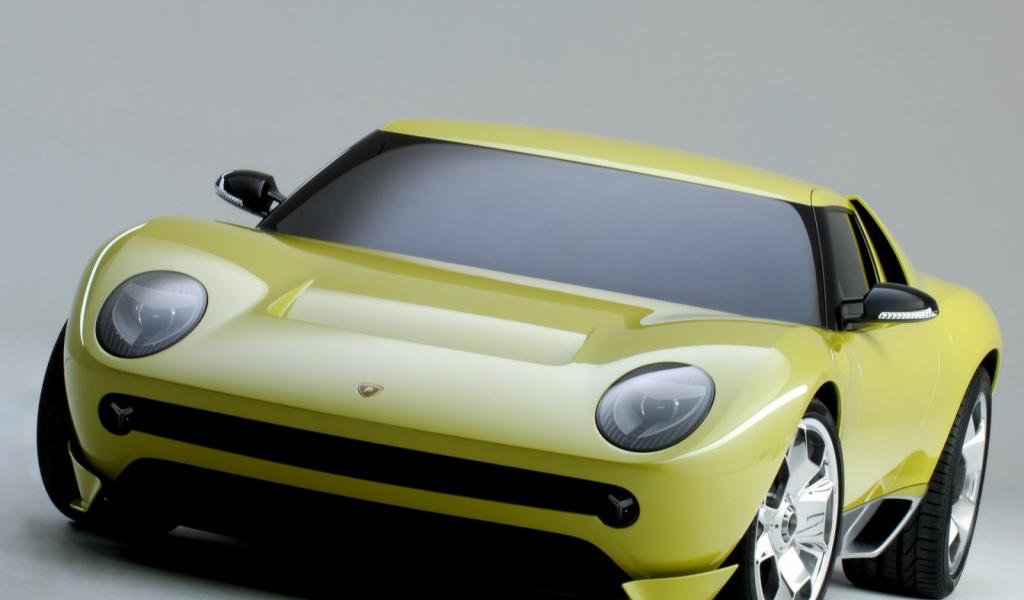 Обои Голубой автомобиль Lamborghini Miura у гаража