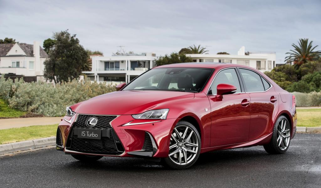 Обои Красный автомобиль Lexus IS 200t F SPORT на дороге