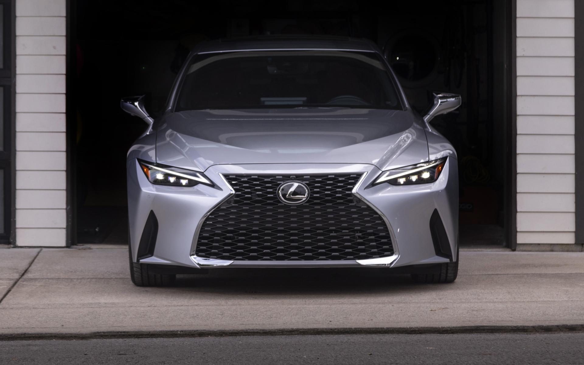 Обои Серебристый автомобиль Lexus IS 300 AWD, 2021 года в гараже