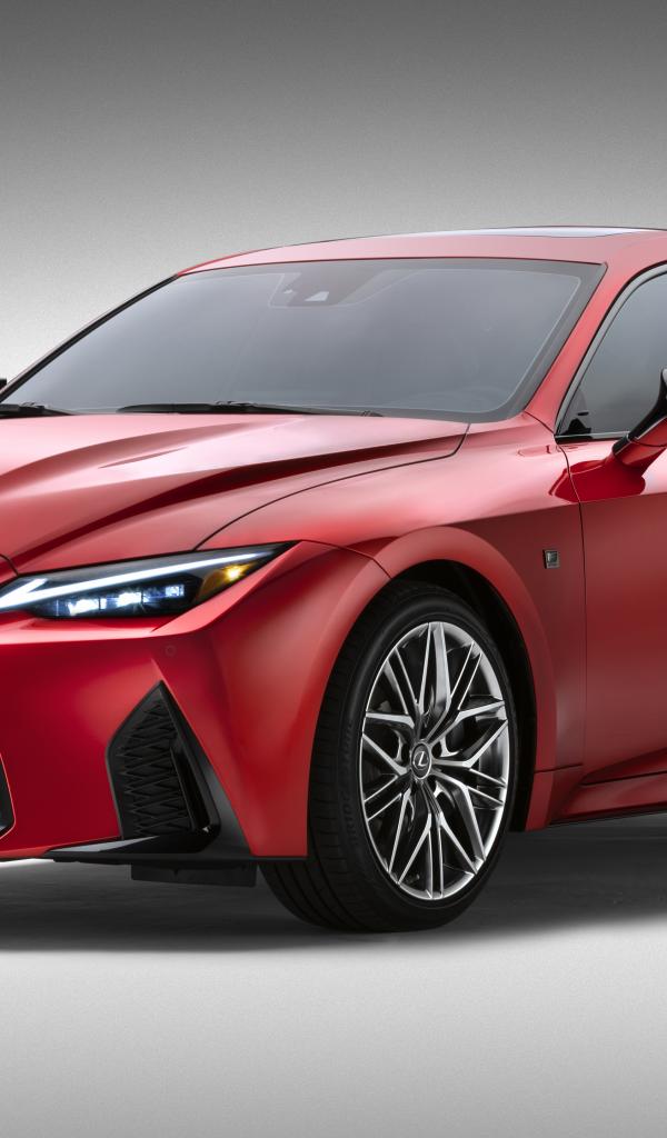 Обои Красный Lexus IS 500 F SPORT Performance, 2022 года на сером фоне
