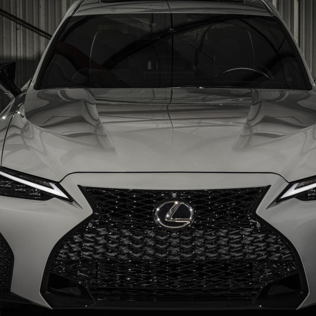 Обои Белый автомобиль Lexus IS 500 F, 2022 года вид спереди