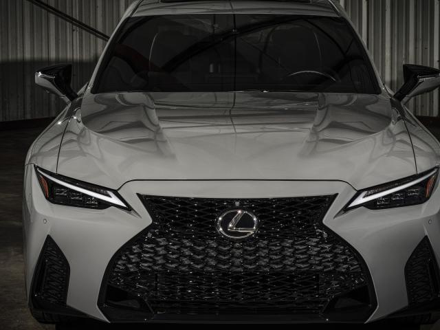 Обои Белый автомобиль Lexus IS 500 F, 2022 года вид спереди