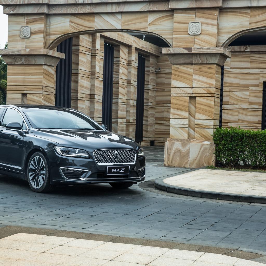 Обои Черный автомобиль Lincoln MKZ Hybrid, 2017