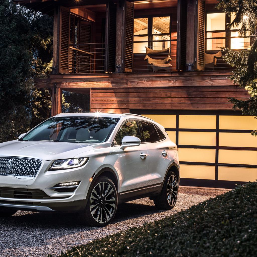 Обои Серебристый автомобиль Lincoln MKC, 2019 у ворот гаража