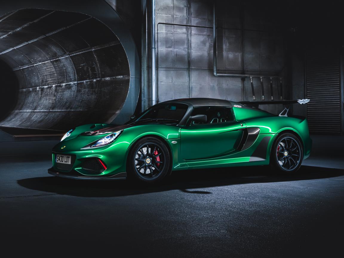 Обои Зеленый автомобиль Lotus Exige Cup 430 в тоннеле