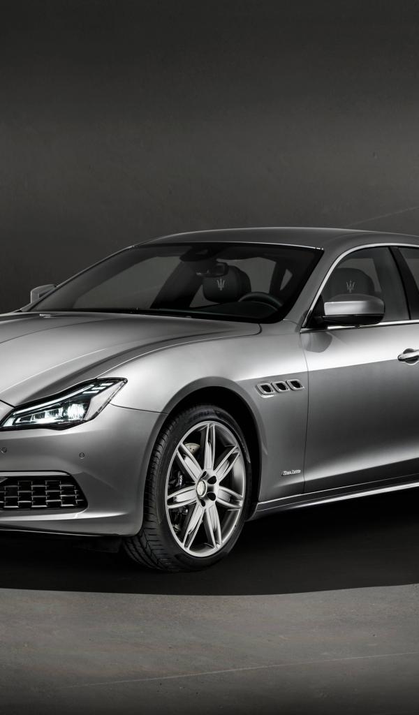 Обои Серебристый автомобиль Maserati Ghibli GranLusso на сером фоне