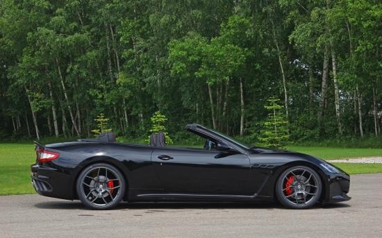 Обои Черный кабриолет Maserati на фоне леса