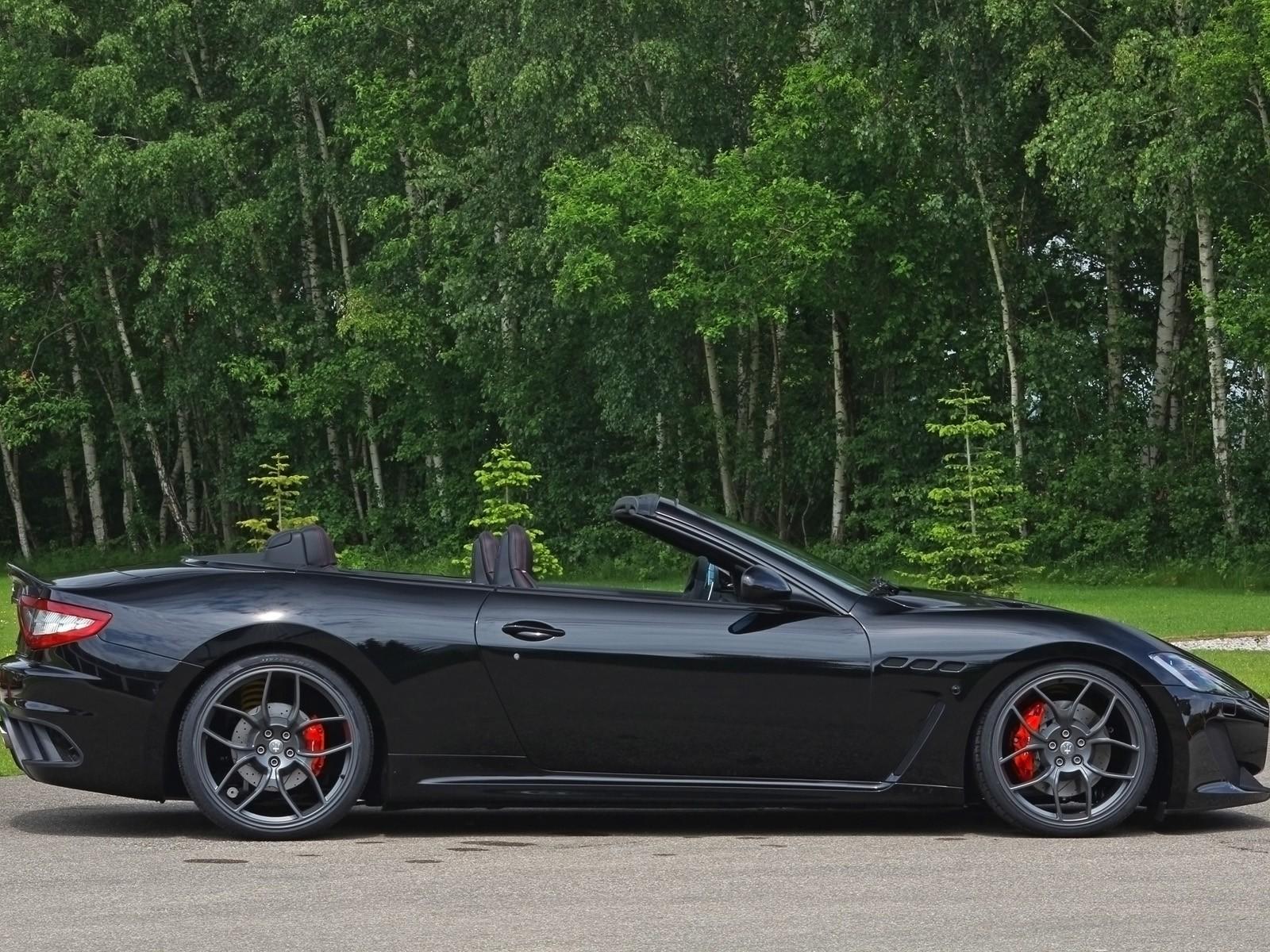 Обои Черный кабриолет Maserati на фоне леса