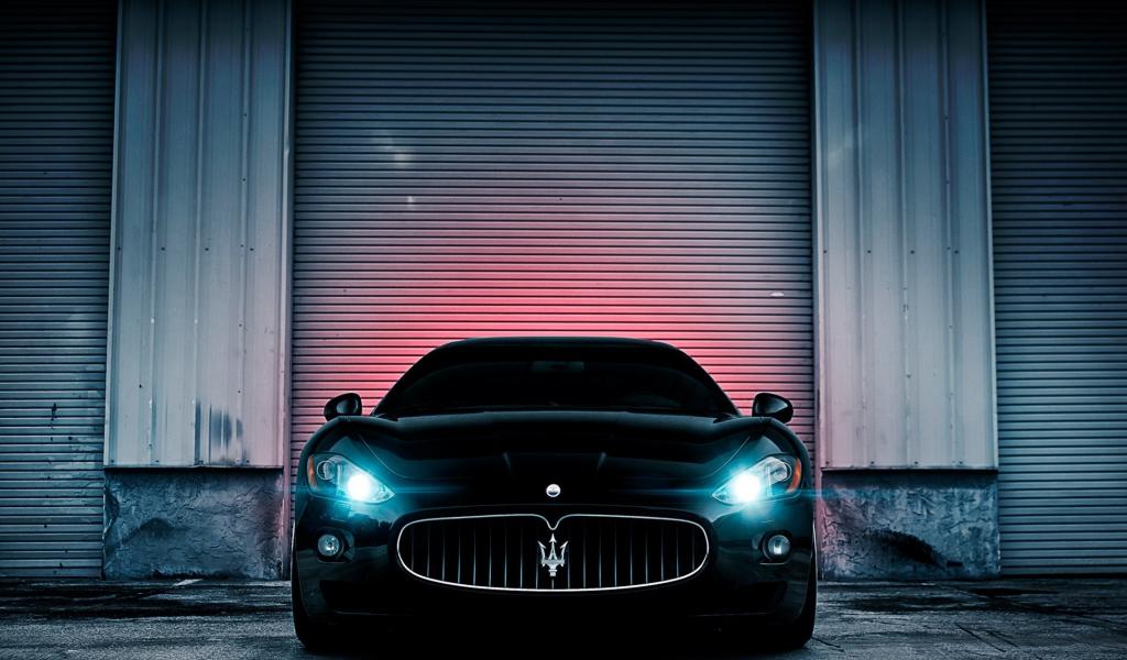 Обои Неоновые фары черного Maserati