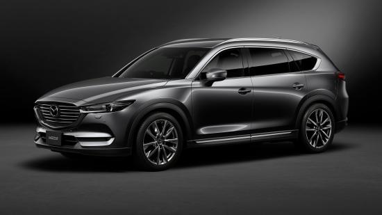 Обои Серый автомобиль Mazda CX 8 Custom, 2018 на сером фоне