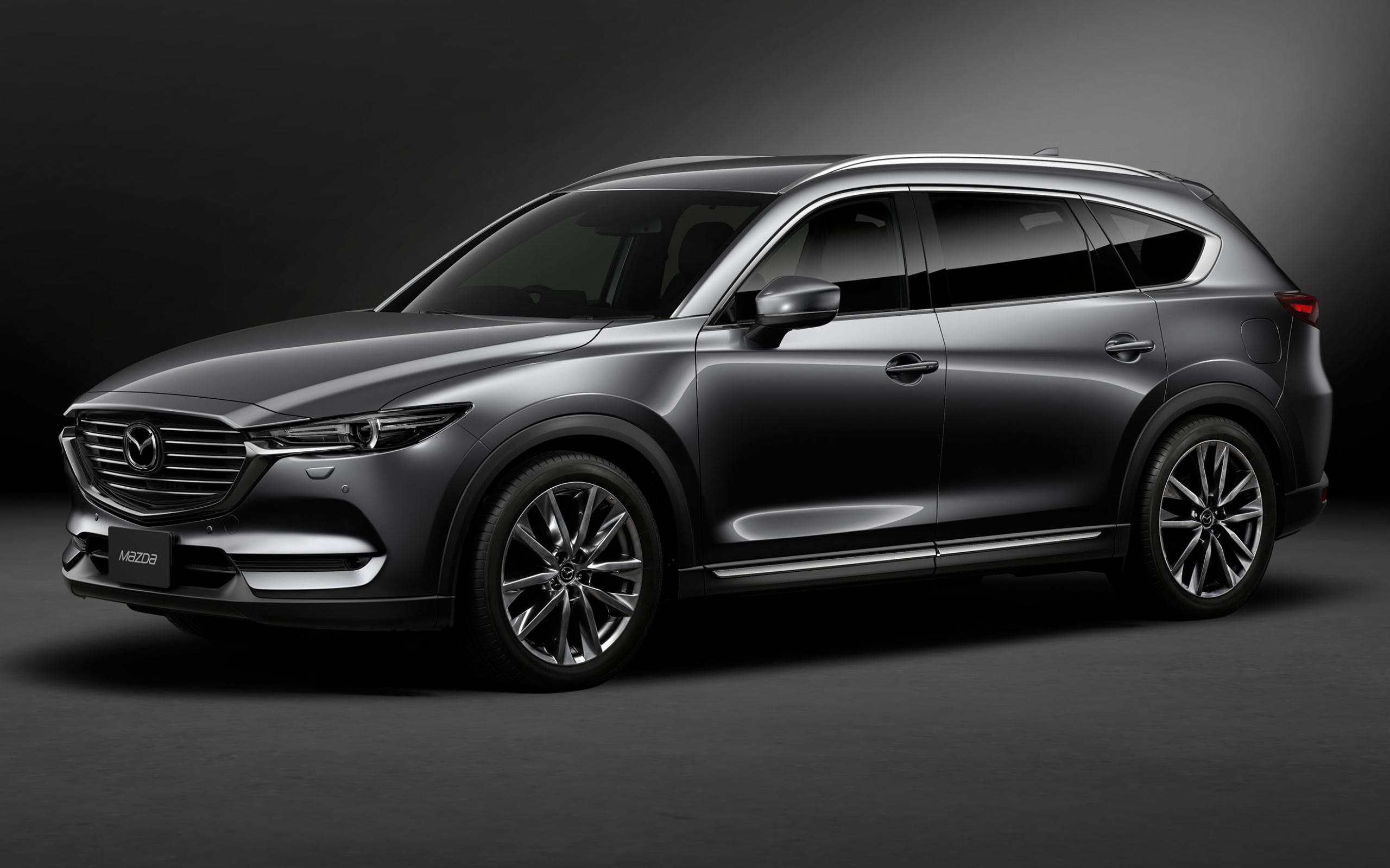 Обои Серый автомобиль Mazda CX 8 Custom, 2018 на сером фоне