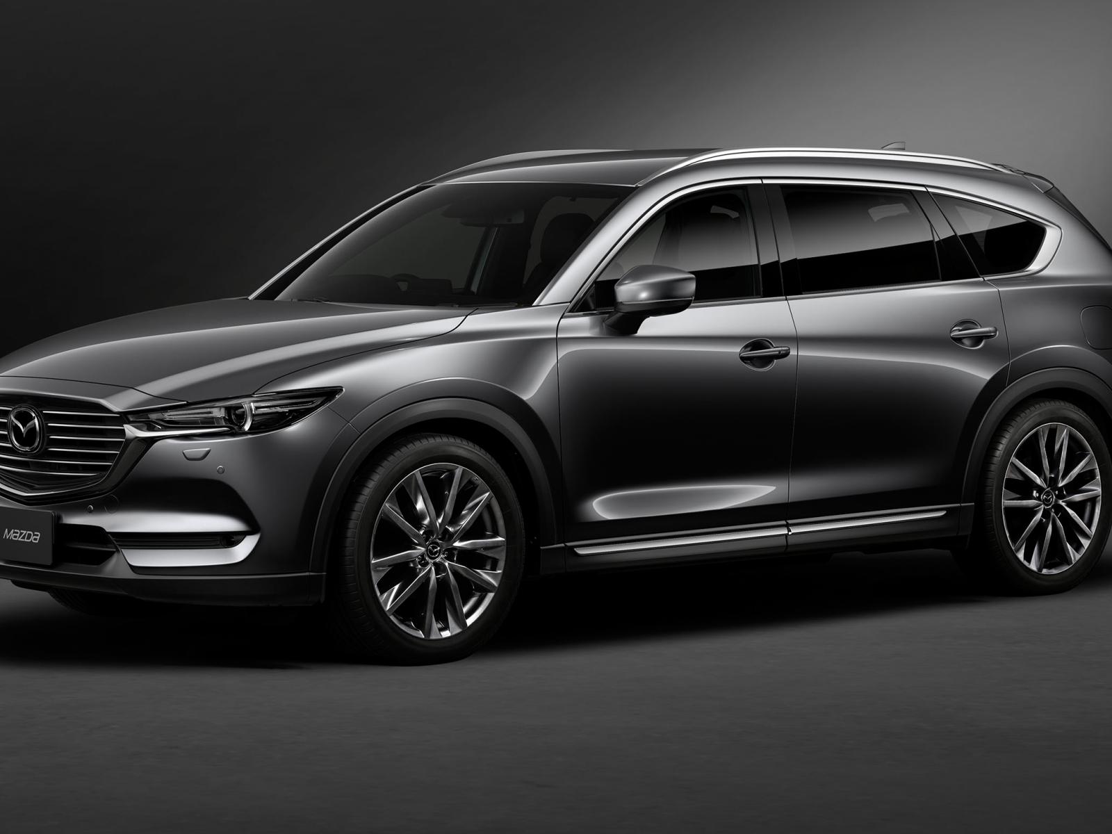 Обои Серый автомобиль Mazda CX 8 Custom, 2018 на сером фоне