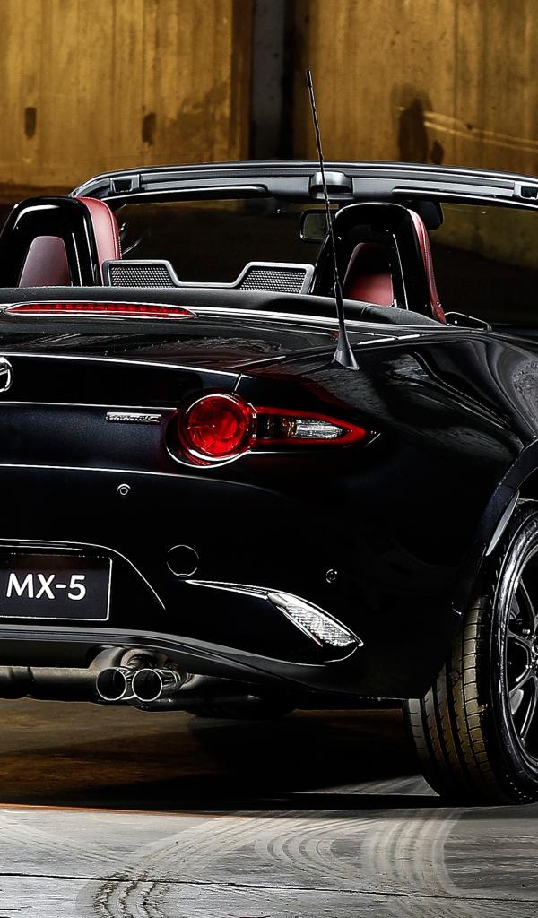 Обои Черный кабриолет Mazda MX-5 Eunos Edition 2020 года вид сзади